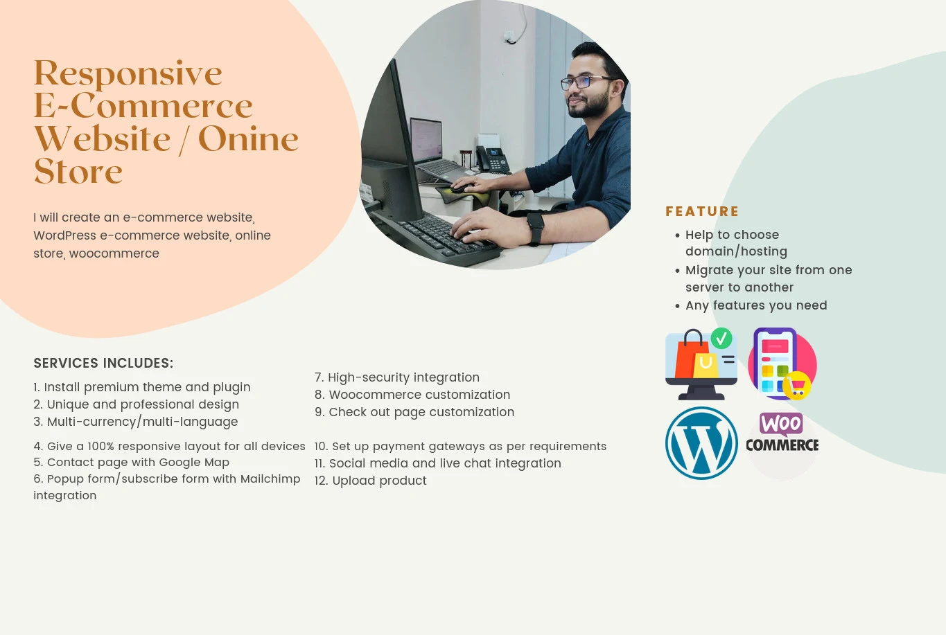 - E-commerce Platform: We work with industry-leading platforms like WooCommerce, Shopify, and more, selecting the one that best suits your requirements.